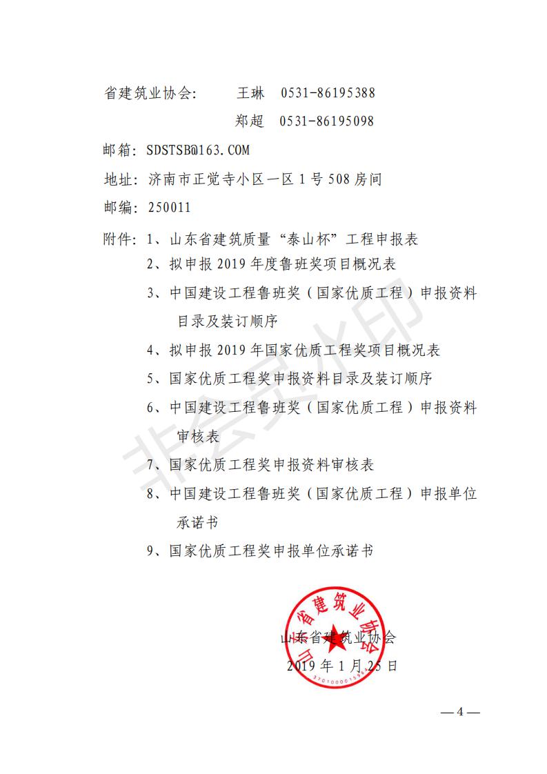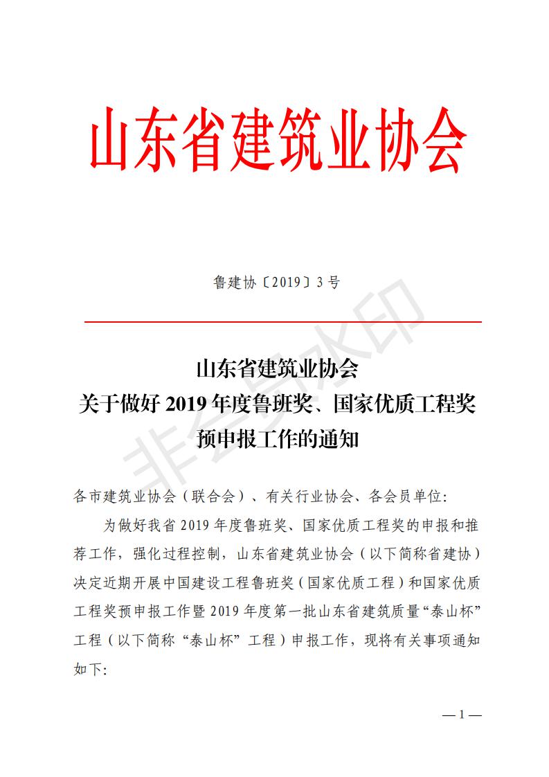 山東省建筑業(yè)協(xié)會 關(guān)于做好2019年度魯班獎、國家優(yōu)質(zhì)工程獎 預(yù)申報(bào)工作的通知