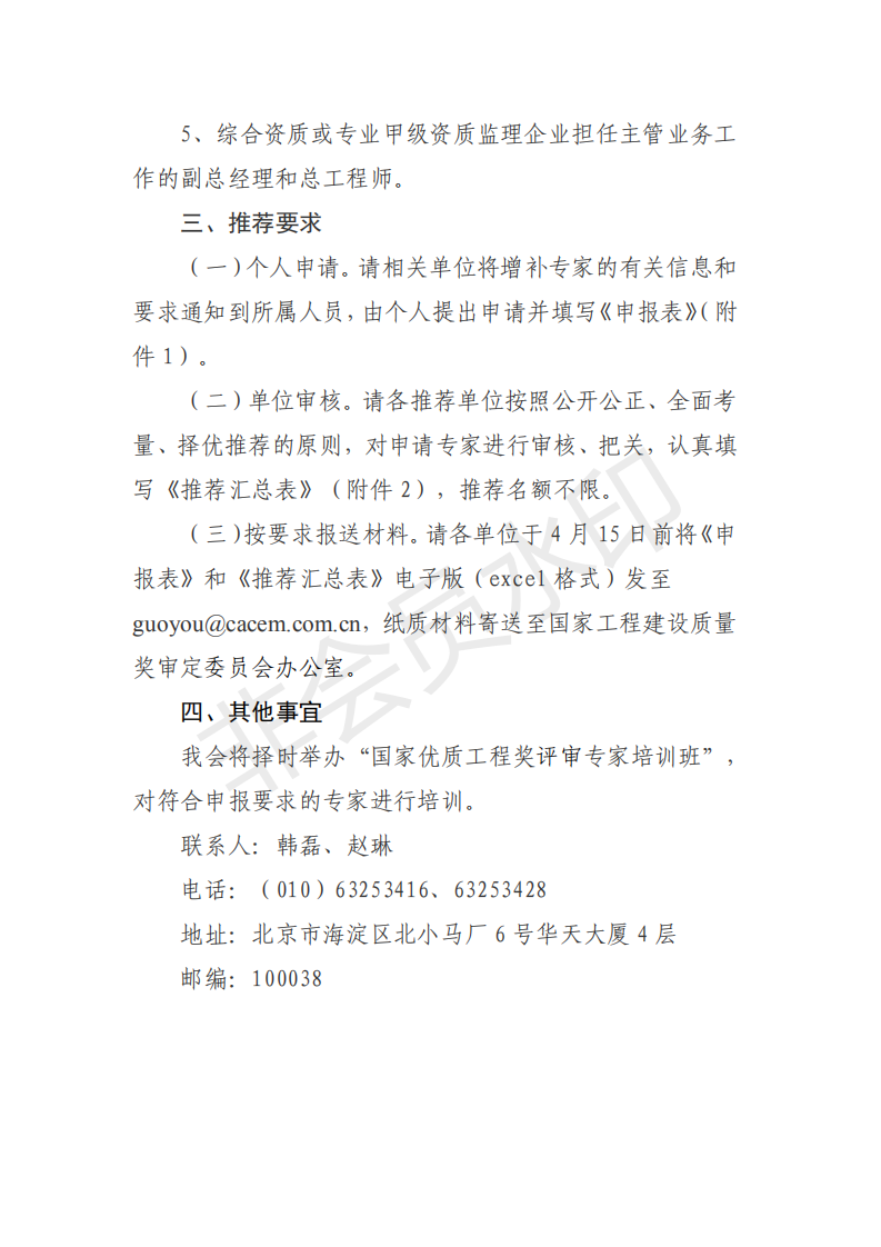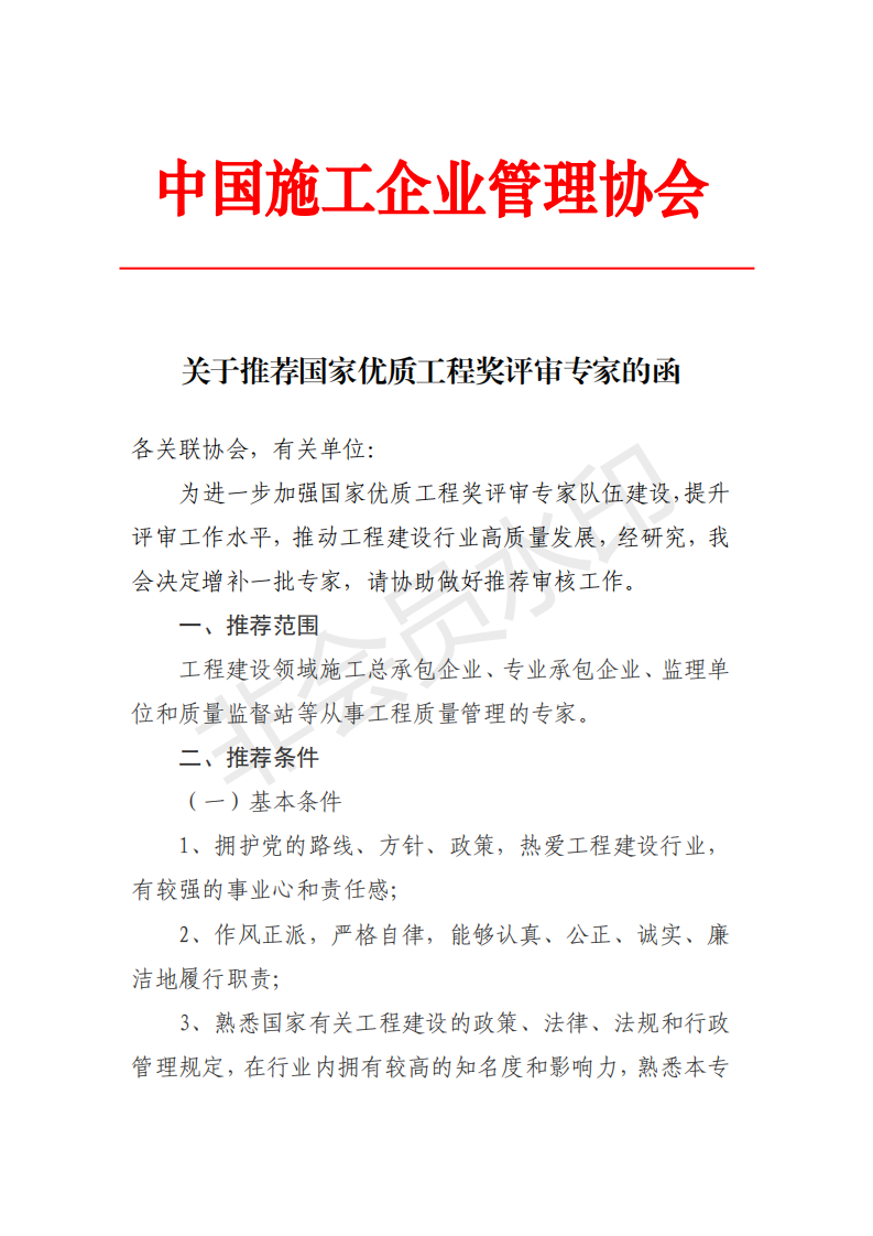 轉(zhuǎn)發(fā)《關(guān)于推薦國(guó)家優(yōu)質(zhì)工程獎(jiǎng)評(píng)審專(zhuān)家的函》的通知