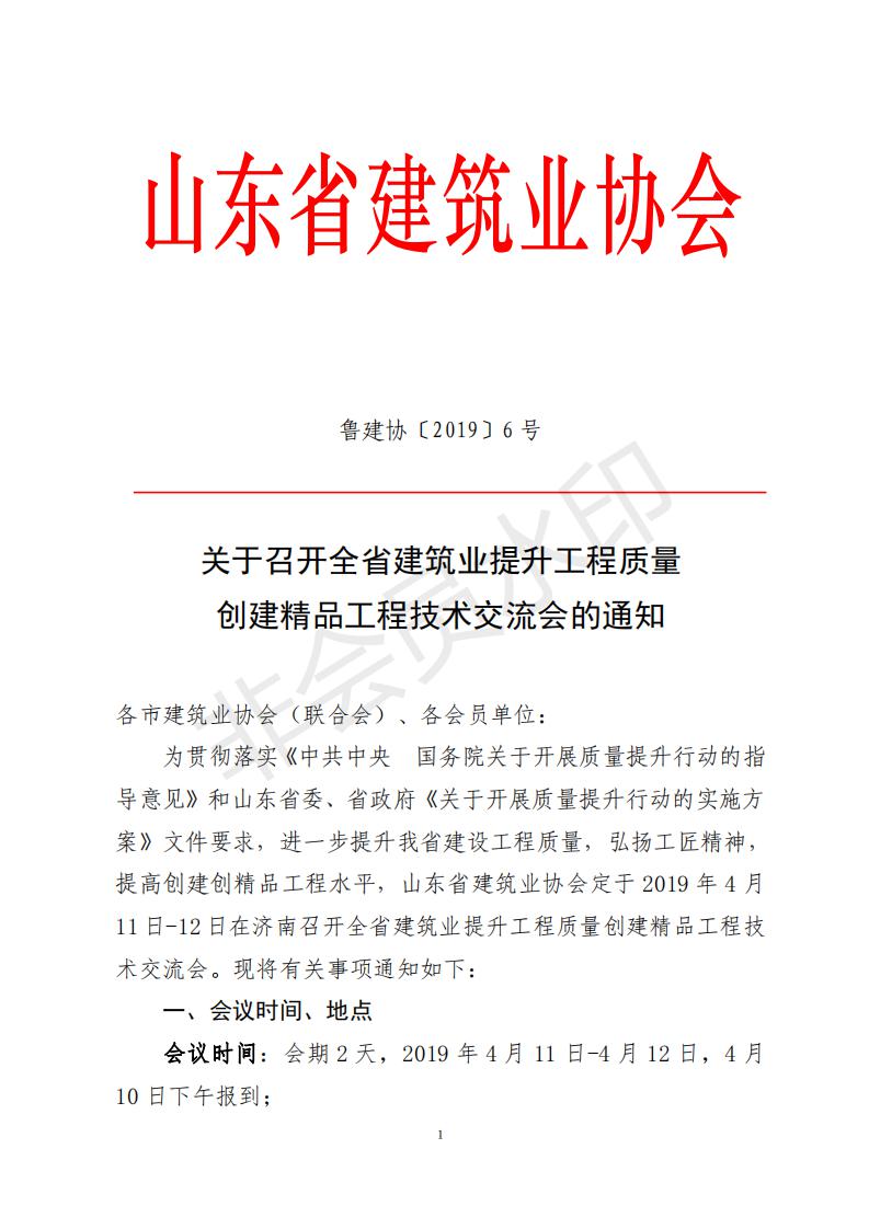 關(guān)于召開全省建筑業(yè)提升工程質(zhì)量創(chuàng)建精品工程技術(shù)交流會的通知