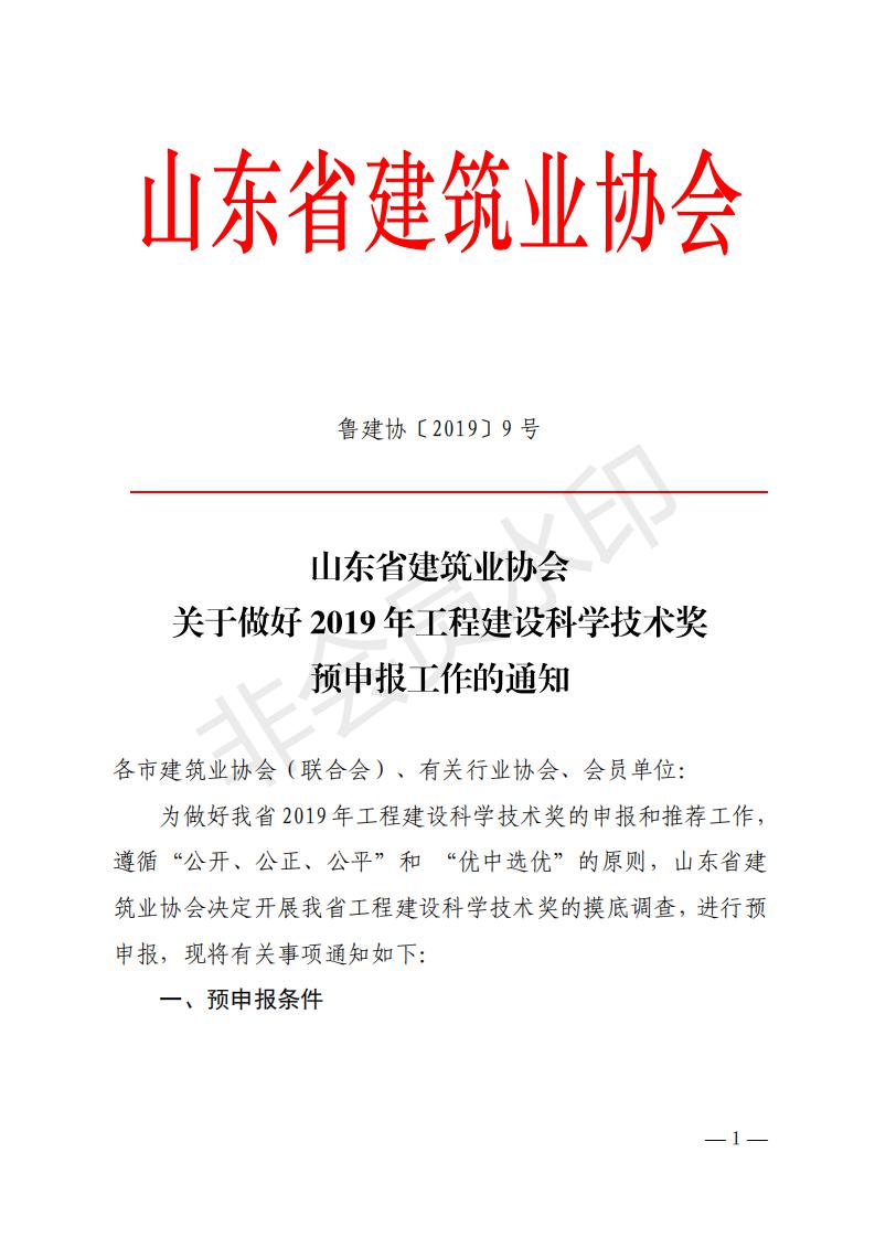 山東省建筑業(yè)協(xié)會關(guān)于做好 2019年工程建設(shè)科學(xué)技術(shù)獎預(yù)申報工作的通知