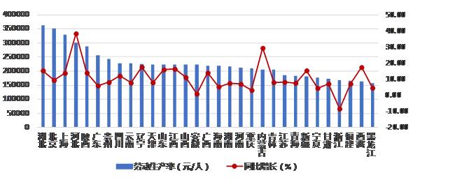 圖7 2019年上半年各地區(qū)建筑業(yè)勞動生產率及其增速